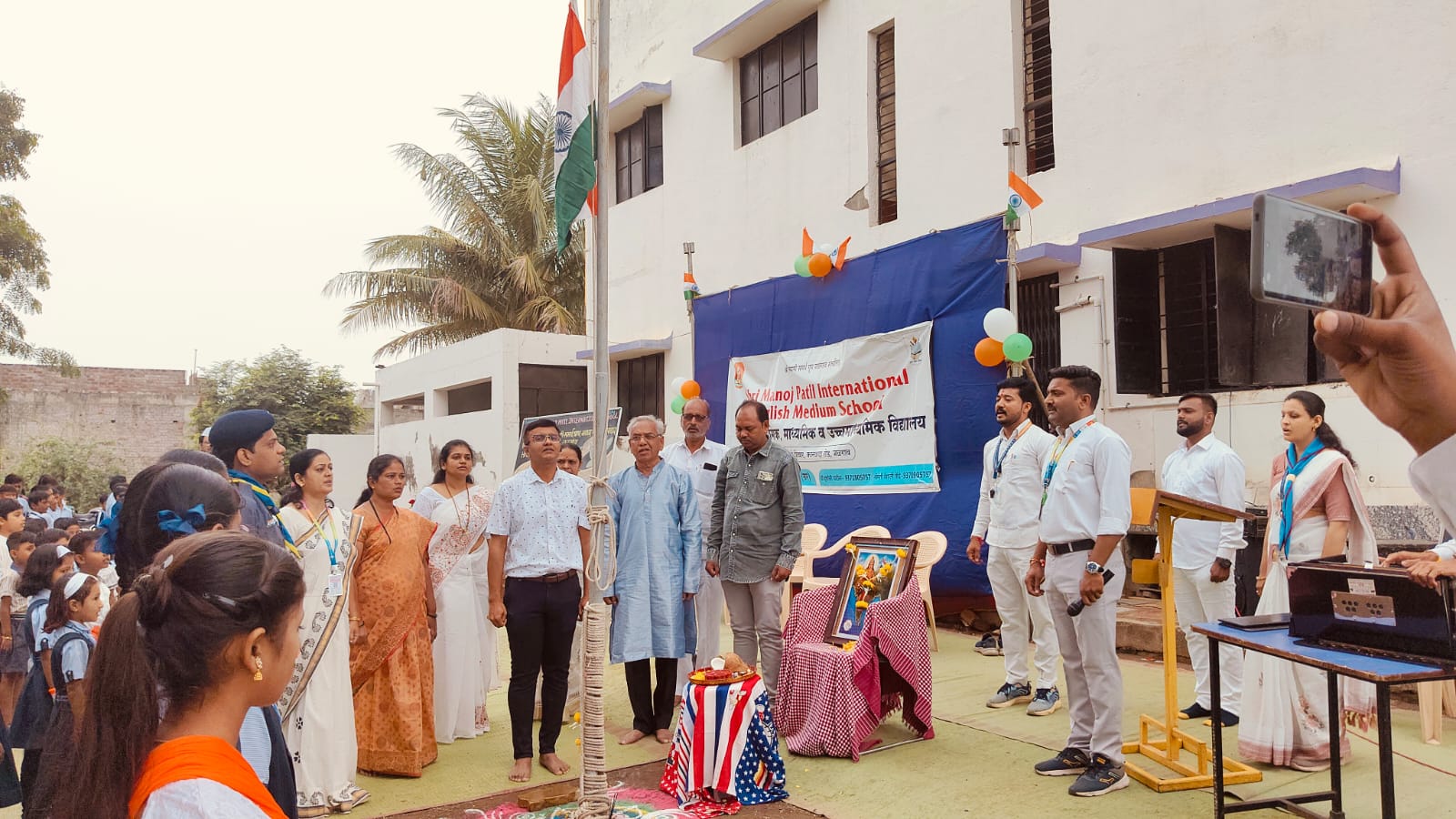 यावेळीप्रमुख पाहुणे म्हणून मा. नगरसेविका गायत्री शिंदे, दिनेश देसाई, युनूस पिंजारी, रविंद्र पाटील , प्राथमिक विद्यालयाच्या मुख्याध्यापिका हर्षाली पाटील, माध्यमिविद्यालयाच्या मुख्याध्यापिका वैशाली शिंदे , श्री मनोज पाटील इंटरनॅशनल स्कूलच्या मुख्याध्यापिका मंजुषा सोनवणे आदी उपस्थित होते. व्यासपीठावर मोठ्या उत्साहात व देशभक्तीच्या जल्लोषात पार पडला. शाळा परिसरात विद्यार्थी, पालक, माजी विद्यार्थी व ग्रामस्थांची उपस्थिती लाभली. देशभक्तीपर गीतांच्या गजरात, प्रमुख मान्यवरांच्या उपस्थितीत राष्ट्रीय ध्वज फडकवण्यात आला.संस्थेचे अध्यक्ष श्री मनोज पाटील सर व संचालक चि. रामराजे पाटील यांनी विद्यार्थ्यांचे मनःपूर्वक कौतुक करून त्यांच्या उज्ज्वल भविष्यासाठी शुभेच्छा दिल्या.