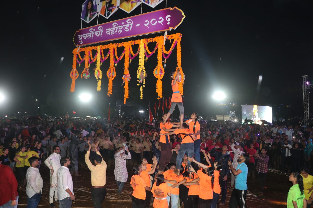 भवरलाल ॲण्ड कांताबाई जैन फाऊंडेशन व युवाशक्ती फाऊंडेशन तर्फे कै. बॅरिस्टर निकम चौक मैदान (सागर पार्क) वर युवतींच्या दहीहंडीचे आयोजन केले होते.