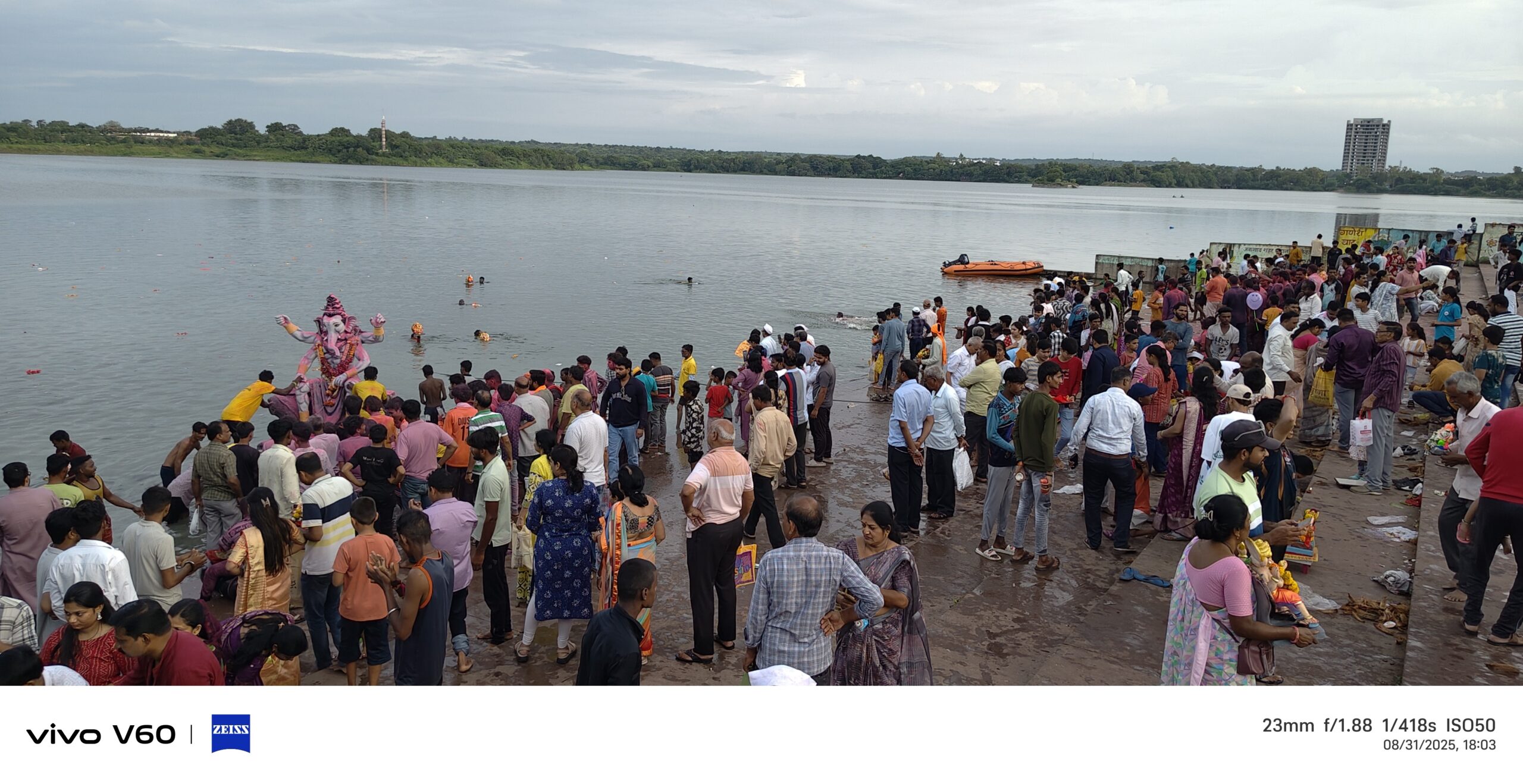 मेहरून तलाव परिसरात सकाळपासूनच भाविक येत होते. पाचव्या दिवशी झालेल्या या विसर्जनात पर्यावरणपूरक गणेशमूर्तींचे प्रमाण लक्षणीय असल्याचे दिसून आले. अनेक भाविकांनी मूर्ती नैसर्गिकरीत्या विसर्जित व्हावी यासाठी कृत्रिम टाक्यांचा वापर केला.