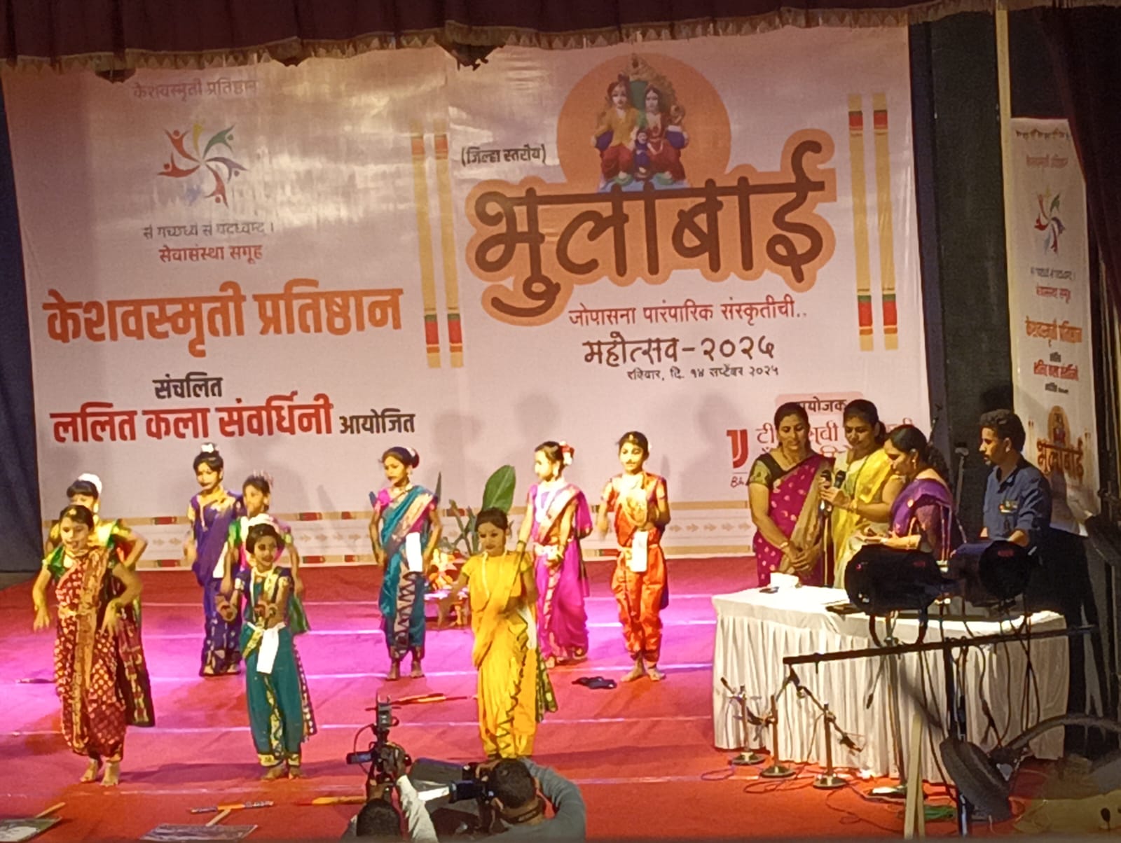 भुलाबाईच्या पारंपरिक गाण्यांचा – “देवराय राणी रुसून बसली कैशी”, “भुलोजी आला माहेरवाशीण घेऊन”, “आई भवानीच्या सवे पाऊले टाकू या गावा” – अशा ओव्यांपासून ते “ऑपरेशन सिंदूर”, “गड-किल्ल्यांचा युनेस्को यादीत समावेश” यांसारख्या सामाजिक संदेशपर सादरीकरणांपर्यंत रंगतदार कार्यक्रमांनी महोत्सव दुमदुमला.महोत्सवाचे उद्घाटन बालरोग तज्ज्ञ डॉ. इंद्राणी मिश्रा यांच्या हस्ते झाले.
