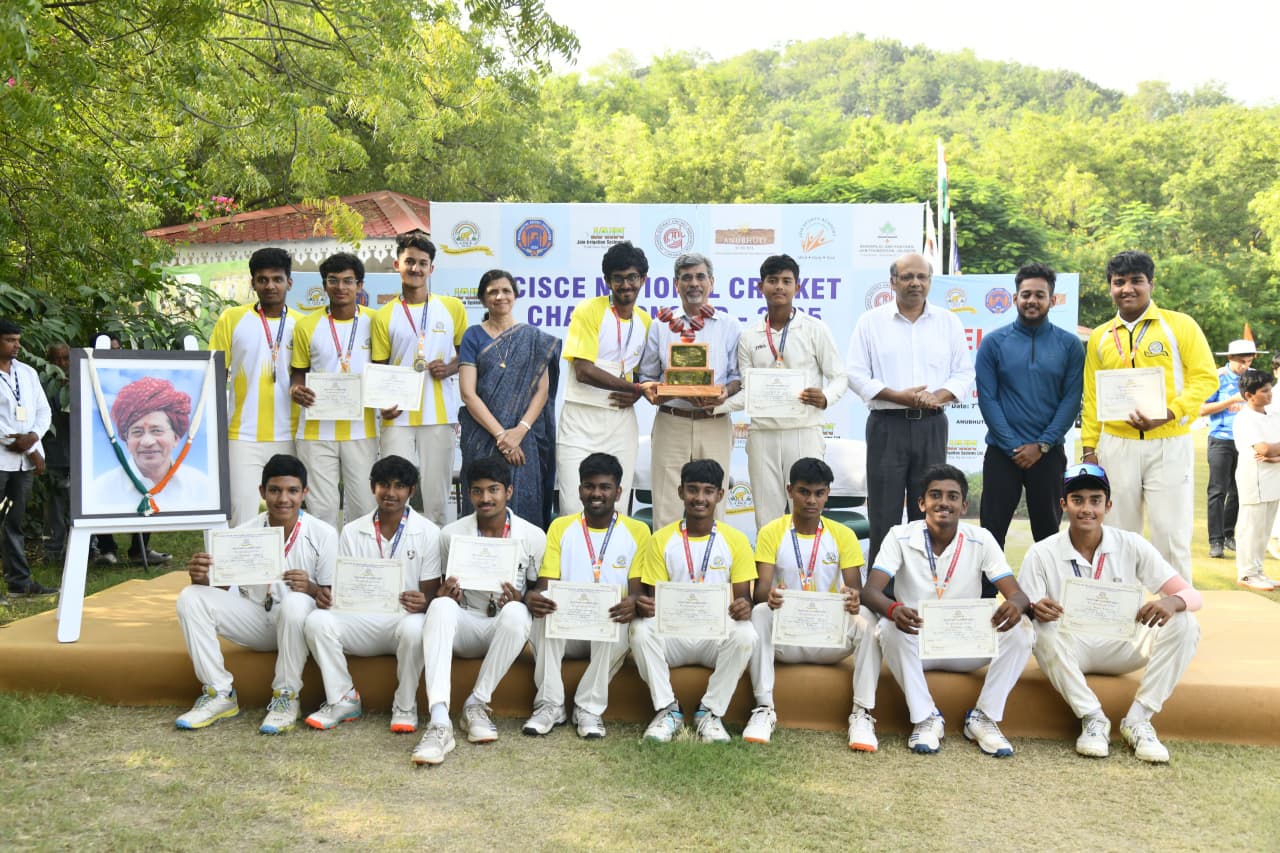सीआयएससीई-१७ वर्षांखालील क्रिकेट राष्ट्रीय अजिंक्यपद स्पर्धेतील विजेत्या तामिळनाडू संघासोबत अतुल जैन, निशा जैन, प्राचार्य देबासीस दास.