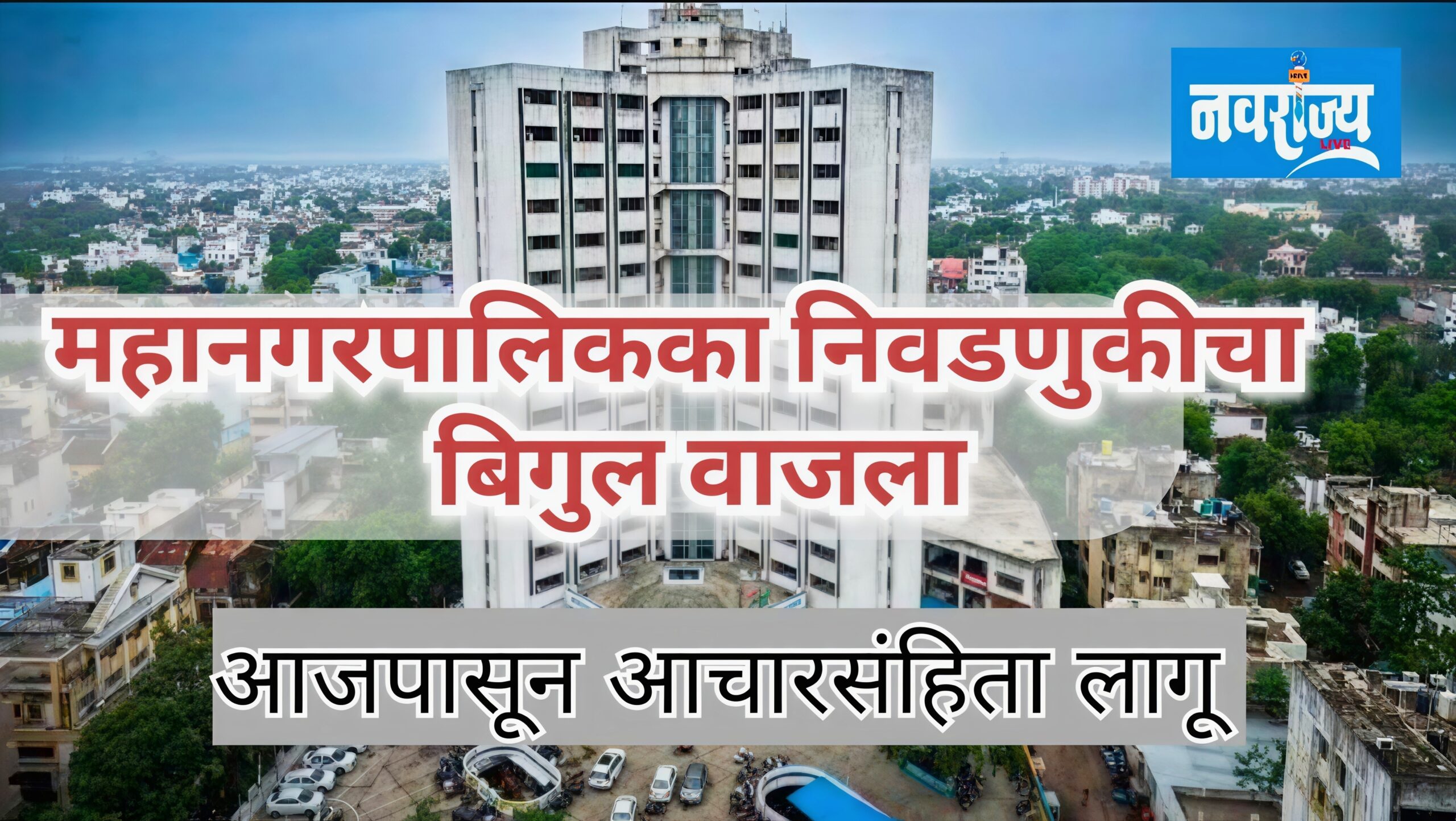 जळगाव – महाराष्ट्र राज्यातील २९ महानगरपालिकांसाठी राज्य निवडणूक आयोगाने आज पत्रकार परिषद घेऊन निवडणूक कार्यक्रम जाहीर केला. यामध्ये जळगाव महानगरपालिकेचाही समावेश असून, त्यामुळे शहरात निवडणुकीचा बिगुल वाजला आहे. निवडणूक जाहीर होताच आजपासून जळगाव महापालिका क्षेत्रात आचारसंहिता लागू करण्यात आली आहे.