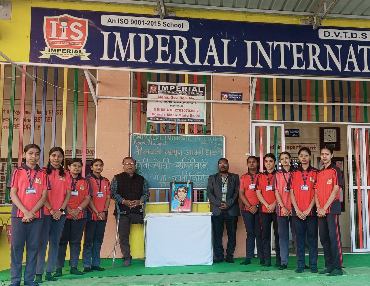 पाळधी | प्रतिनिधी : इंपिरियल इंटरनॅशनल स्कूल, पाळधी येथे दि. ३ रोजी क्रांतिज्योती सावित्रीबाई फुले यांची जयंती उत्साहपूर्ण व प्रेरणादायी वातावरणात साजरी करण्यात आली. कार्यक्रमाची सुरुवात क्रांतिज्योती सावित्रीबाई फुले यांच्या प्रतिमेचे पूजन करून त्यांना विनम्र अभिवादनाने करण्यात आली.