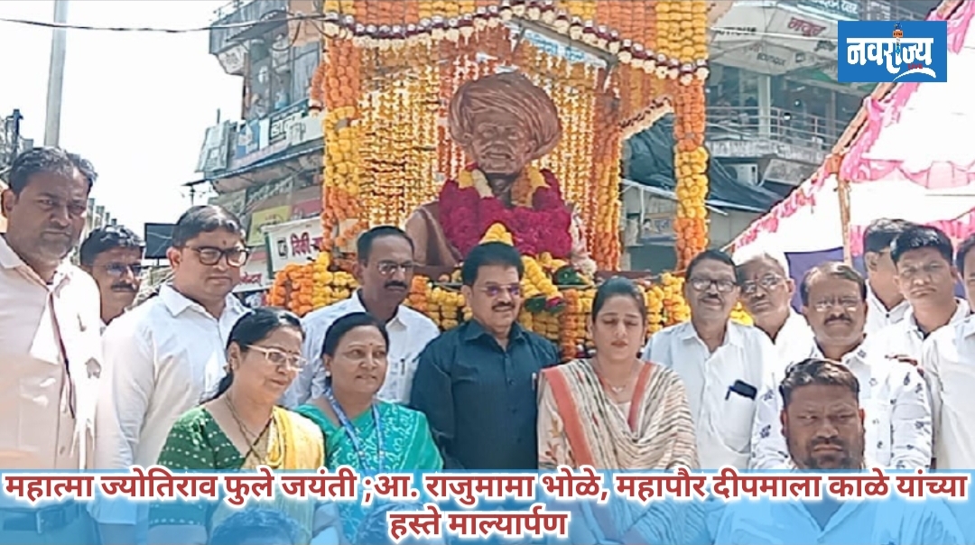 जळगाव: क्रांतीसूर्य महात्मा ज्योतिबा फुले यांच्या जयंतीनिमित्त जळगाव शहर महानगरपालिकेच्या वतीने शनिवारी त्यांना भावपूर्ण अभिवादन करण्यात आले. येथील सेंट्रल फुले मार्केट परिसरातील महात्मा फुले यांच्या पूर्णाकृती पुतळ्याला आमदार राजूमामा भोळे आणि महापौर दीपमाला काळे यांच्या हस्ते पुष्पहार अर्पण करून विनम्र अभिवादन करण्यात आले.