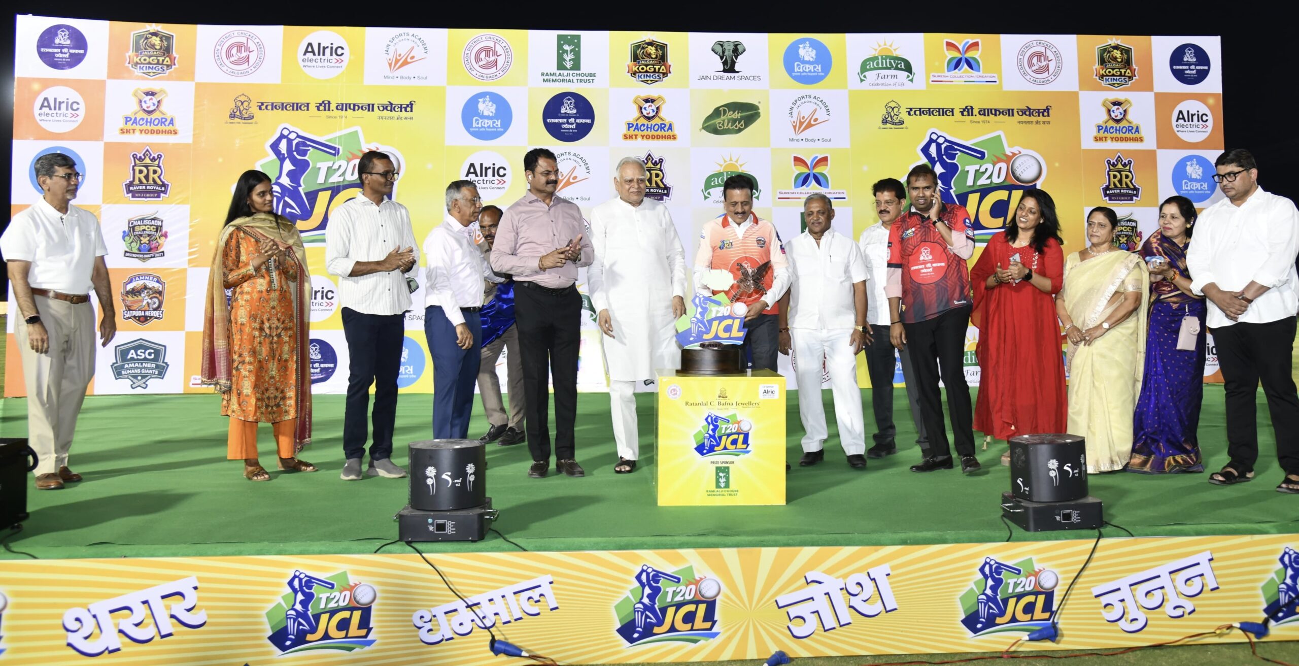 मान्यवरांच्या उपस्थितीत जळगाव क्रिकेट लीगच्या ट्रॉफीचे दिमाखानात उद्घाटन करण्यात आले. त्यानंतर शानदार सांस्कृतिक कार्यक्रम झाले. फटाक्यांची आतषबाजी करण्यात आली.