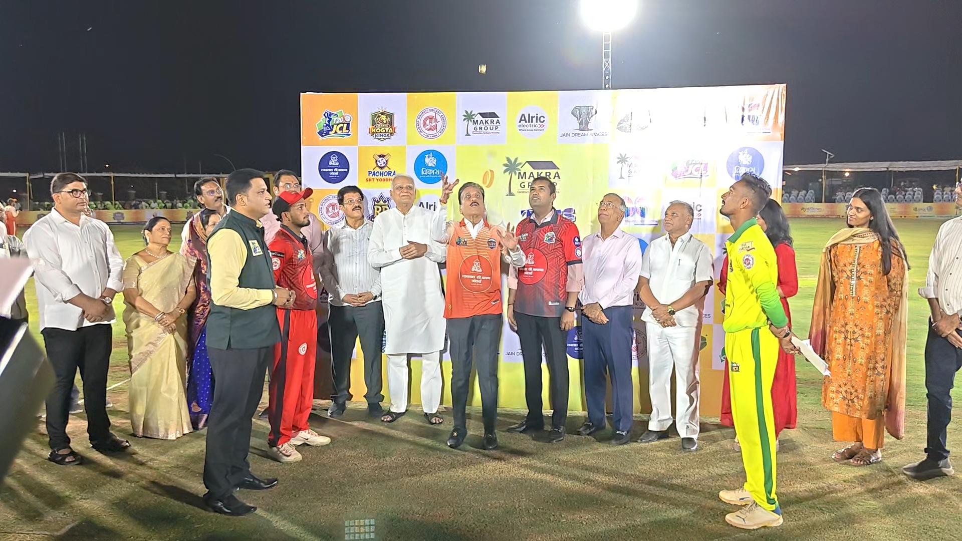 जळगाव प्रतिनिधी – जळगाव क्रिकेट लिगच्या कार्यक्रमाचे शानदार उद्घाटन शनिवारी संध्याकाळी झाले. याप्रसंगी प्रमुख पाहुणे म्हणून जलसंपदा मंत्री गिरीश महाजन, माजी मंत्री सुरेशदादा जैन, जैन इरिगेशनचे अध्यक्ष अशोक जैन, आमदार सुरेश भोळे, आमदार मंगेश चव्हाण, आमदार चंद्रकांत सोनवणे, आमदार किशोर पाटील, जळगाव महापौर दीपमाला काळे, उपमहापौर मनोज चौधरी, संचालक अतुल जैन, धुळ्याचे महापौर मायादेवी परदेशी, बाफना ज्वेलर्सच्या नयनतारा बाफना, स्पेक्ट्रमचे दीपक चौधरी उपस्थित होते.