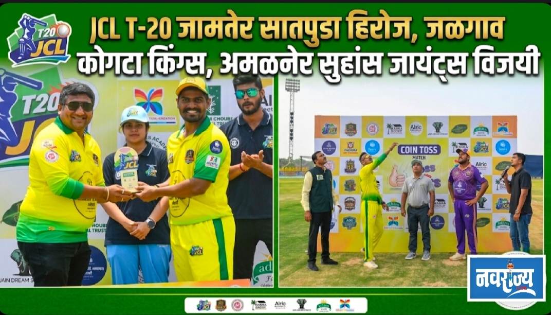 जळगाव दि.21 (प्रतिनिधी):जळगाव जिल्हा क्रिकेट असोसिएशनच्या वतीने आयोजित रतनलाल सी. बाफना ज्वेलर्स प्रायोजित व अलरीक इलेक्ट्रीकल्स सहप्रायोजकत्वाखाली जळगाव क्रिकेट लिग लिग-२०२६, JCL T-20 चा रोमांच शिगेला पोहचला आहे. मंगळवारी झालेल्या पहिल्या दोन सामन्यांत जळगाव कोगटा किंग्स आणि जामनेर सातपुडा हिरोज हा संघ विजयी झाला. त्यापूर्वी सोमवारी रात्री झालेल्या सामन्यात अमळनेर सुहांस जायंट्स संघाने विजय मिळवला होता. उपांत्यफेरी गाठवण्यासाठी आता जेसीएलच्या सर्व संघामध्ये चुरस निर्माण झाली आहे.